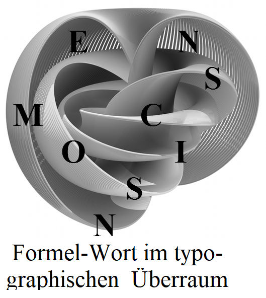 Physikalische Theorien sind in zu weite Spekulationen geraten und die Psychoanalyse kommt in der Praxis auch nicht tief genug, um zu dieser Lösung etwas beitragen zu können. Esoterische Phantasien und mythische Wissenschaften taugen noch weniger dazu. Doch der typographische Überraum kann hierzu etwas vermitteln. Er verbindet die Buchstaben mit der Geometrie in einer Weise, wie sie nicht nur als blande Aussage, als Statement,